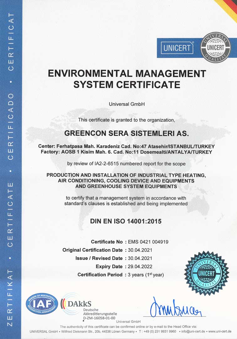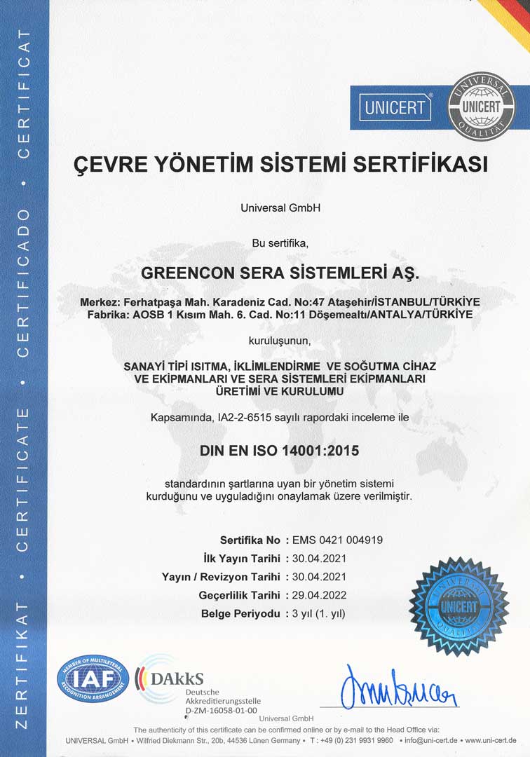 ÇEVRE YÖNETİM SİSTEMİ SERTİFİKASI