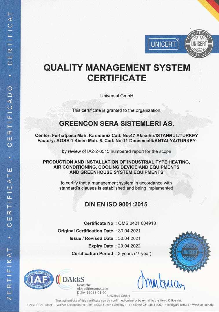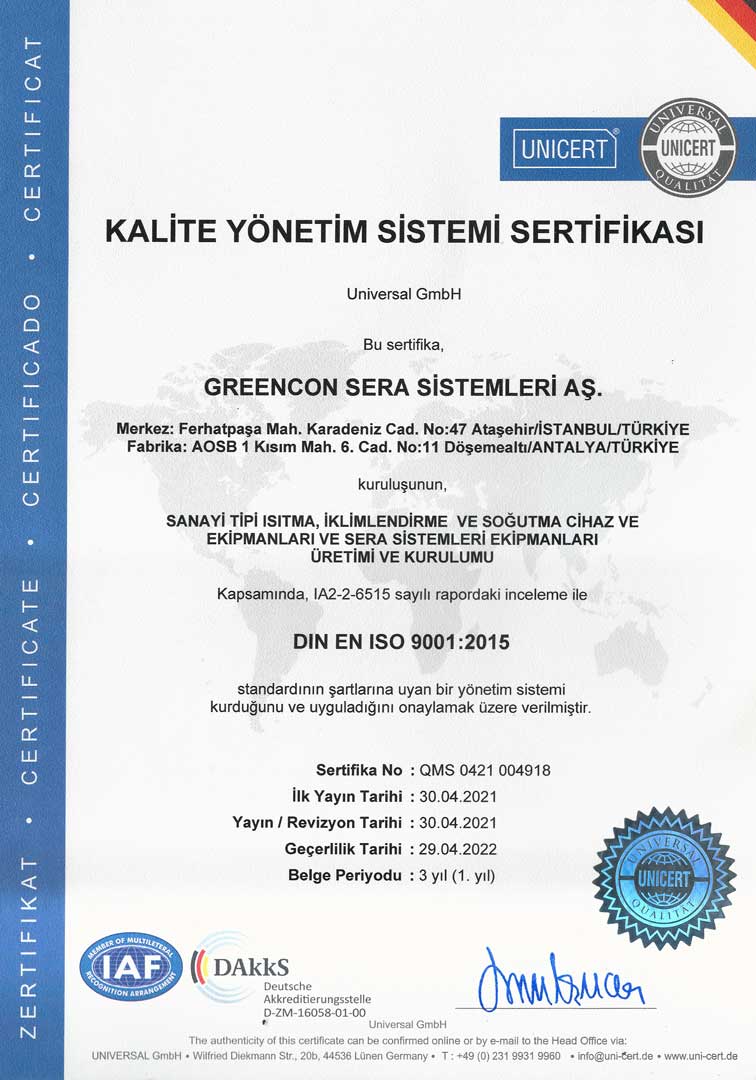 KALİTE YÖNETİM SİSTEMİ SERTİFİKASI