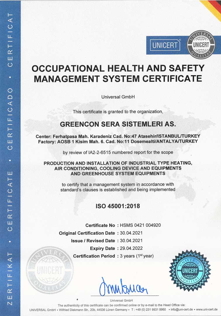 İŞ SAĞLIĞI VE GÜVENLİĞİ YÖNETİM SERTİFİKASI